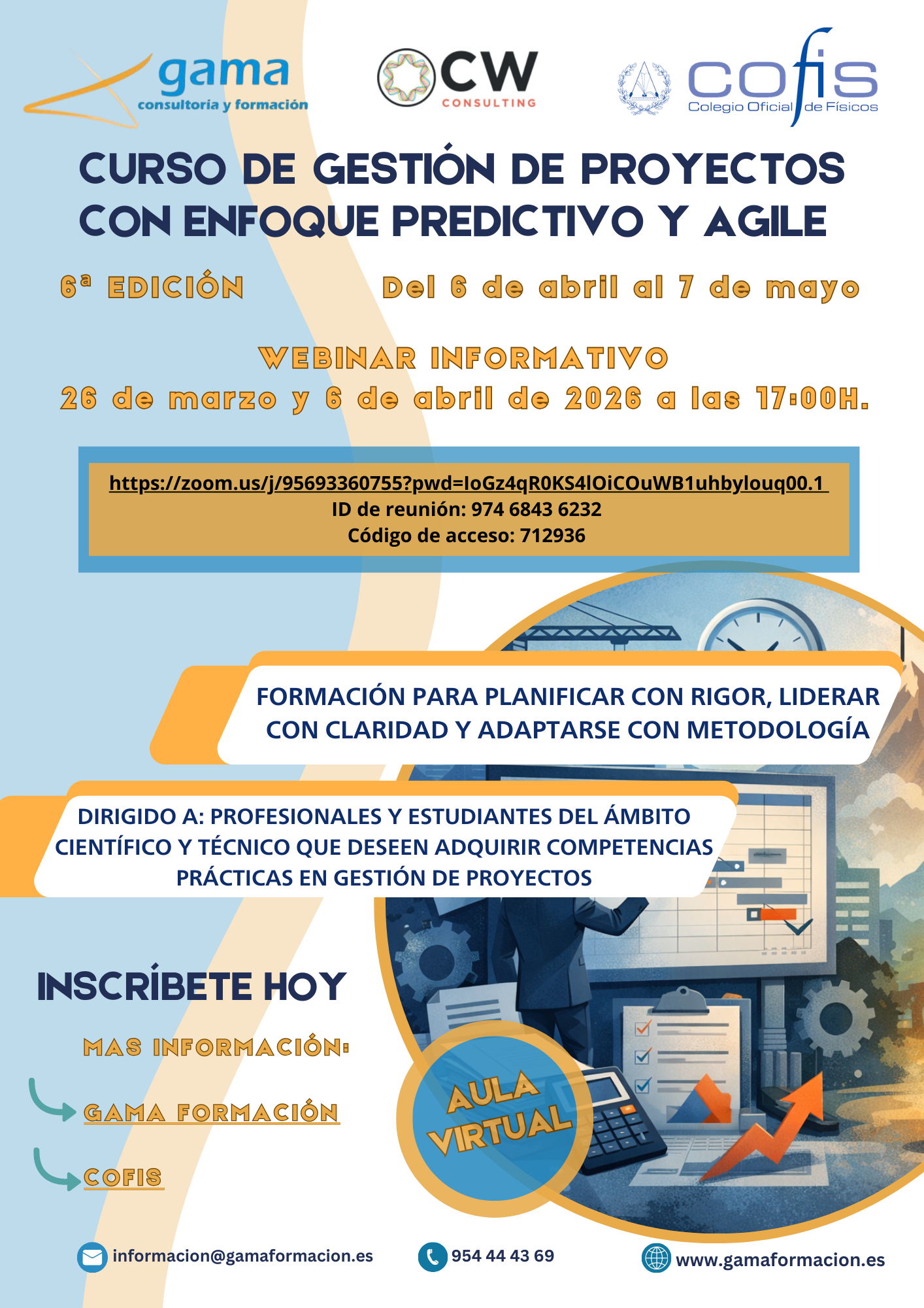 GAMA Consultoría y Formación en colaboración con el Ilustre Colegio Oficial de Físicos comienza la 6ª edición del curso de Gestión de Proyectos con Enfoque predictivo y Agile.